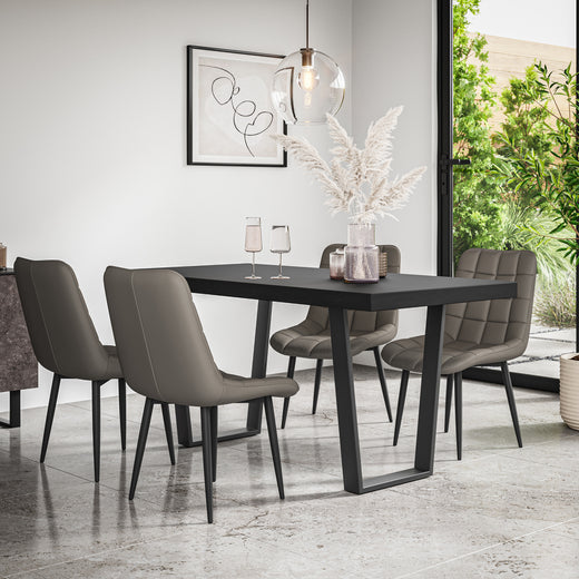 Aria Dining Table And Chairs - Concrete Effect Table Top w Black Legs + Nova Dining Chair Set of 4/6
