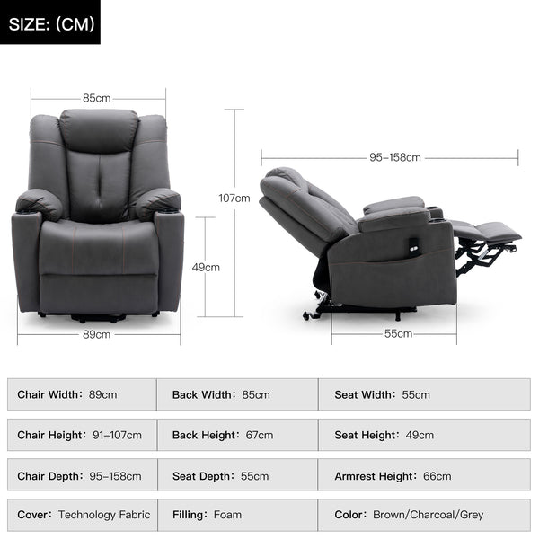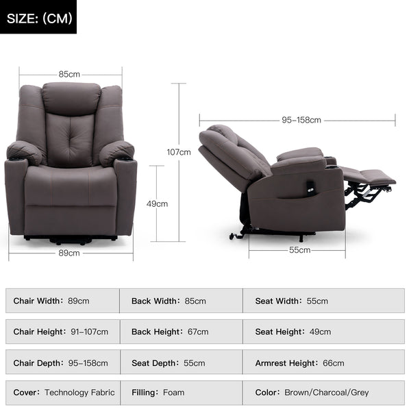 Upholstered in our brand-new technology fabric, as well as providing extra comfort, this innovative fabric is more hardwearing than leather and easier to maintain. With comfy foam padding and pillow back cushioning, the Afton has been designed for those with mobility difficulties and older people. This rise recliner is ideal for anyone needing extra support standing up after being seated. The full chaise seating allows you to recline to an almost sleeping position.