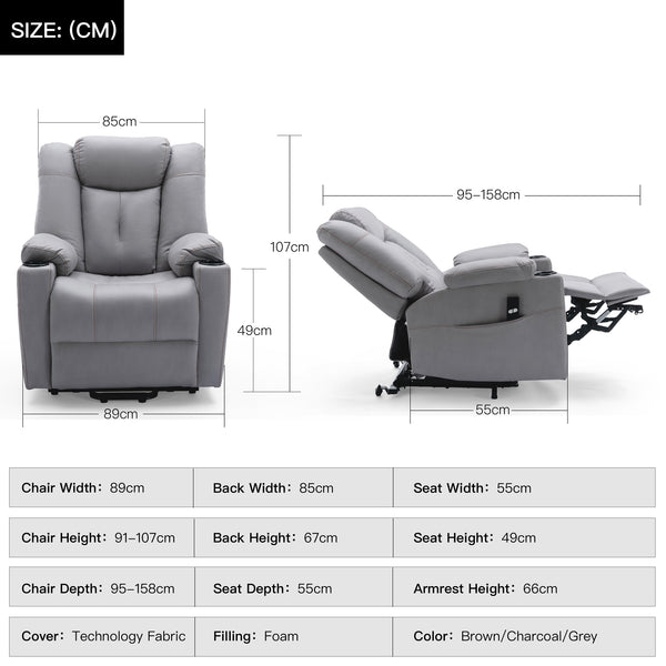 Afton Rise Recliner Technology Fabric Chair in Grey
