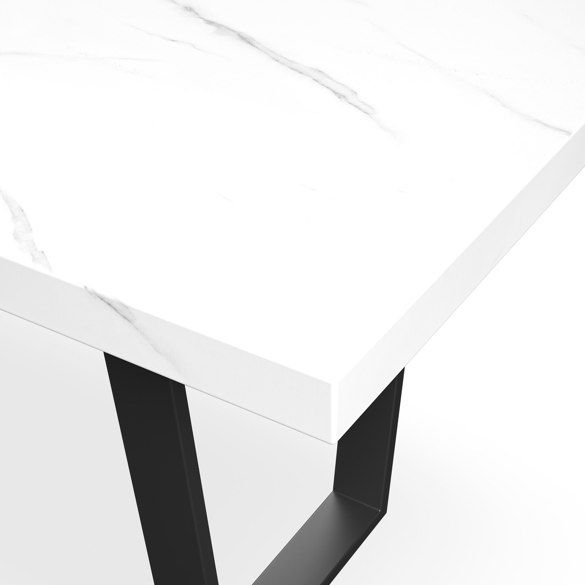 Haydon Extending Dining Table + Chairs- White Marble Effect Table Top w Black Legs + Nova Dining Chair Set of 4/6
