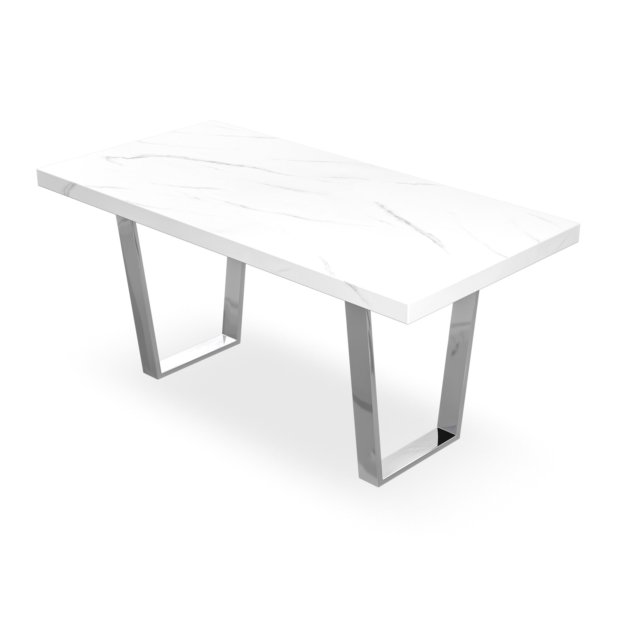 Beneath the gorgeous table top are super sturdy U-shaped Stainless Steel Chrome legs, adding class, quality and strength to the dining table.