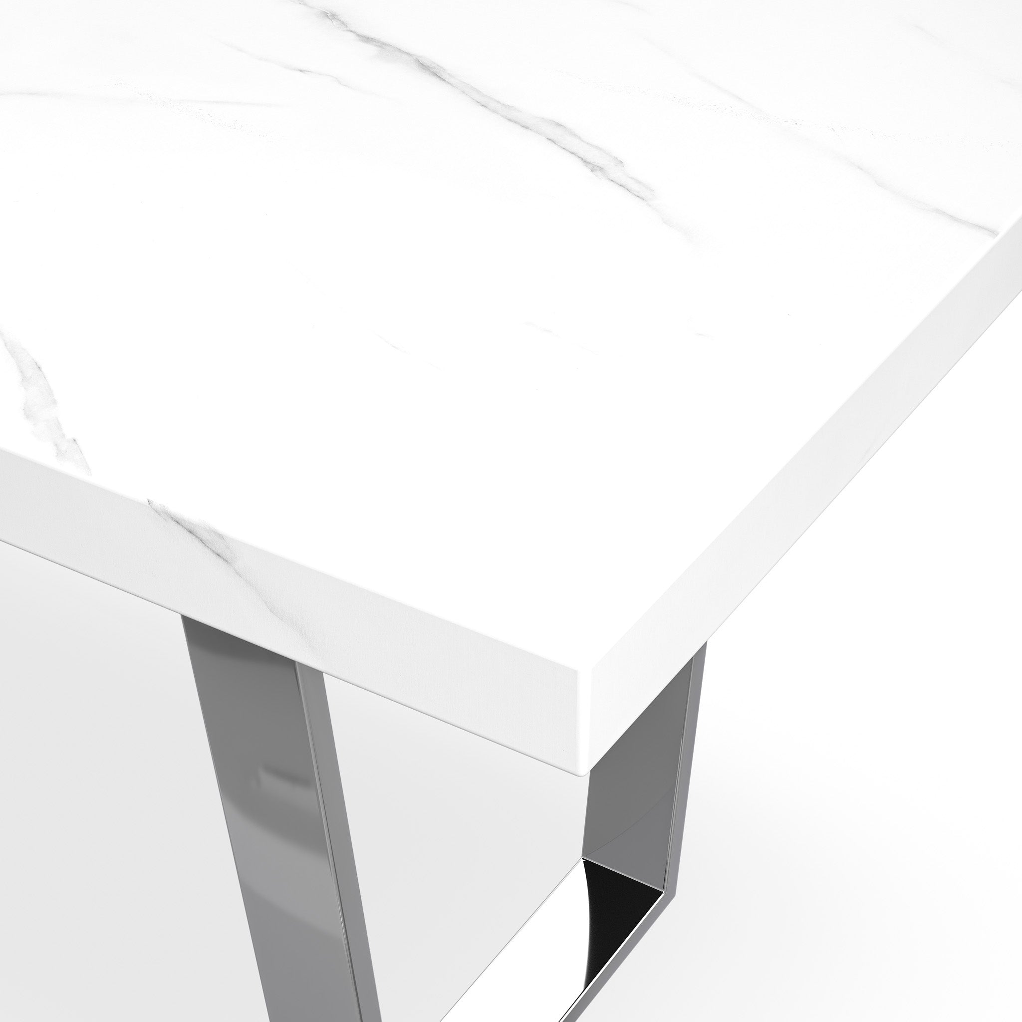 Aria dining table and chairs - white marble effect table top w chrome legs + monza dining chair w chrome legs set of 4/6