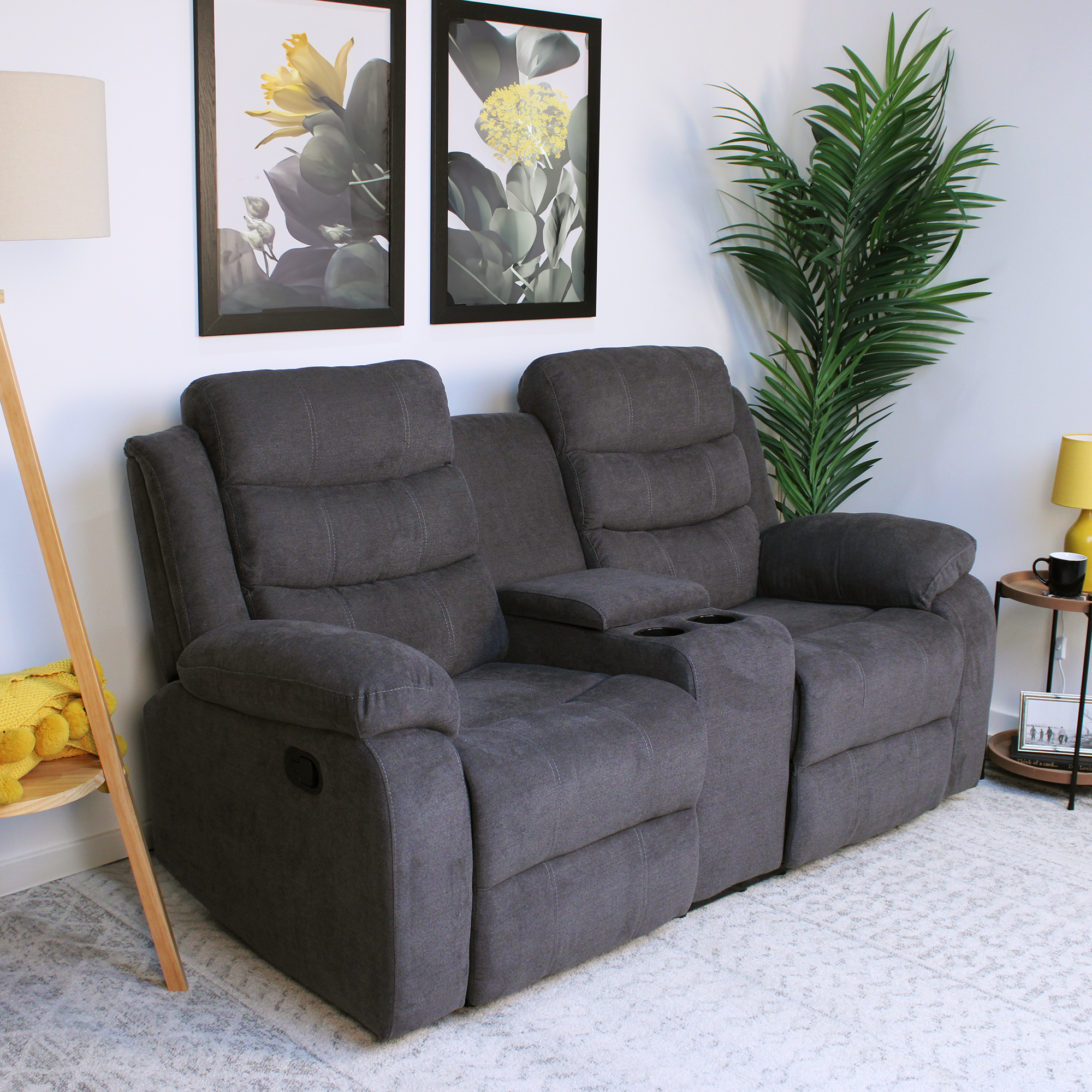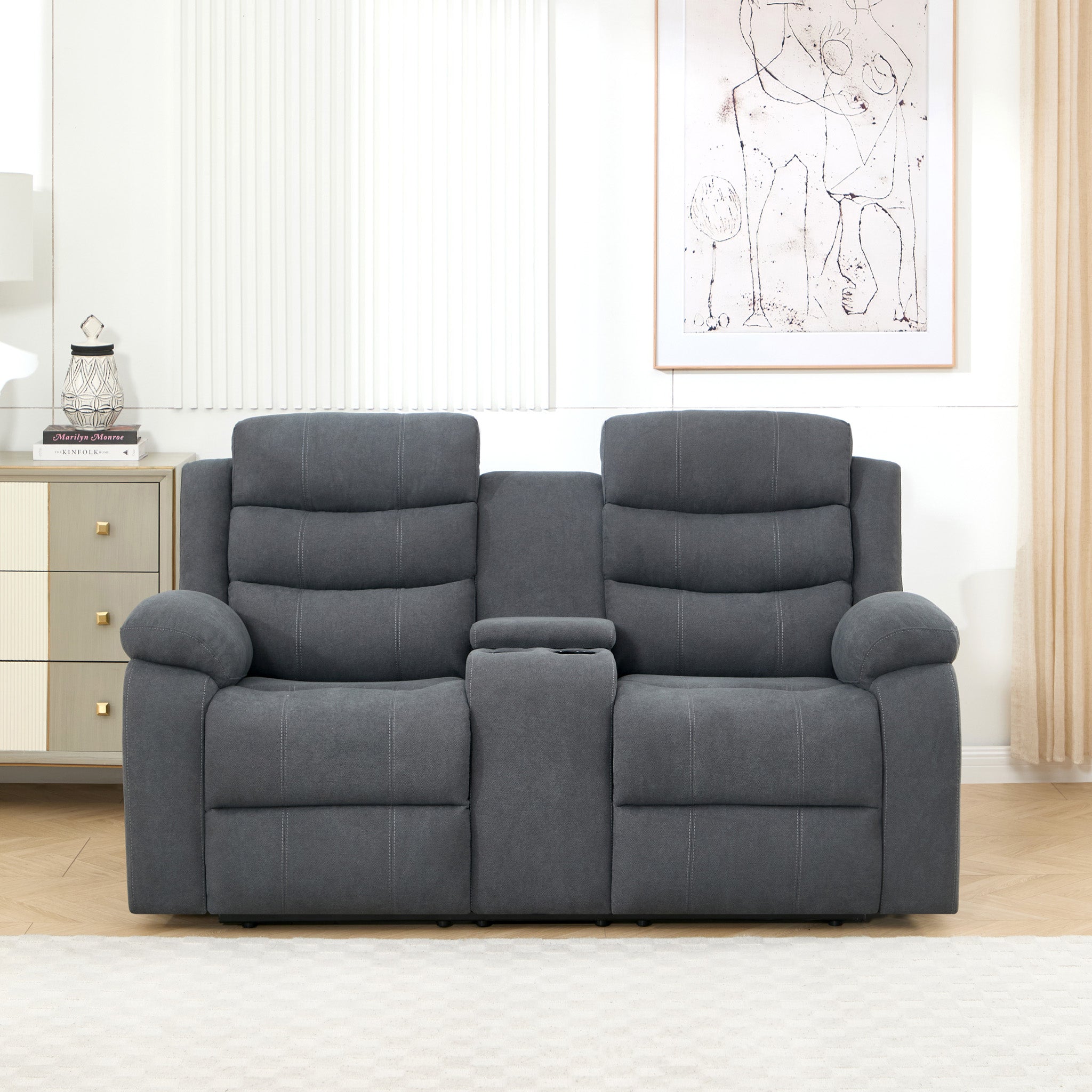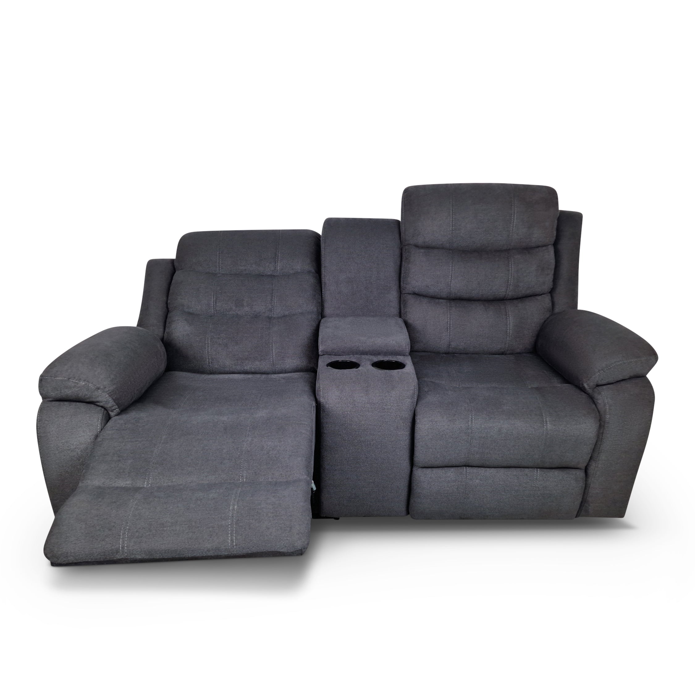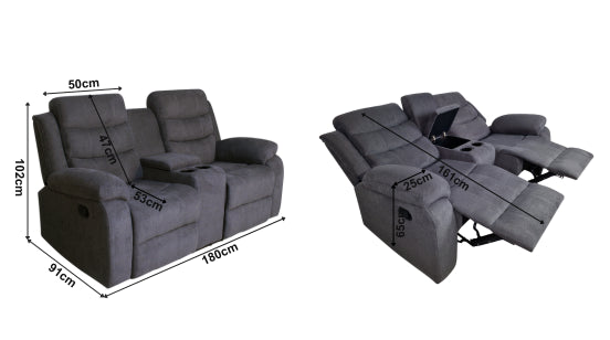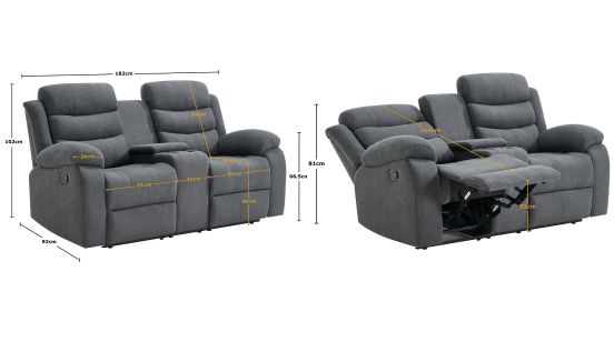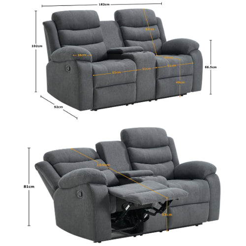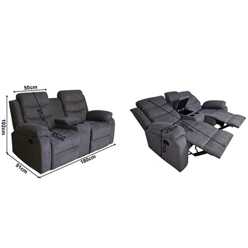 Boston 2 Seater Recliner Sofa with Drinks Console in Grey