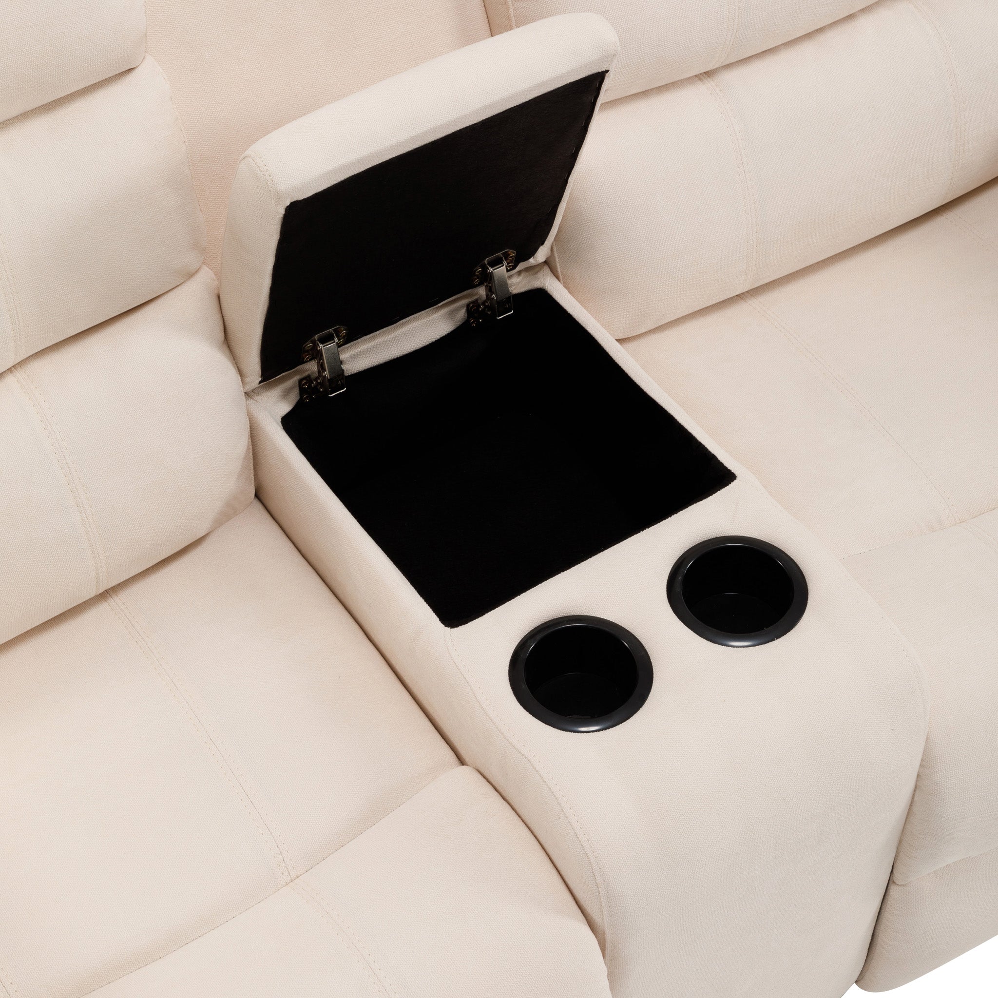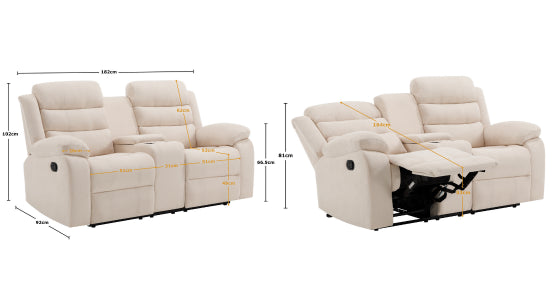 Boston 2 Seater Recliner Sofa with Drinks Console in Beige