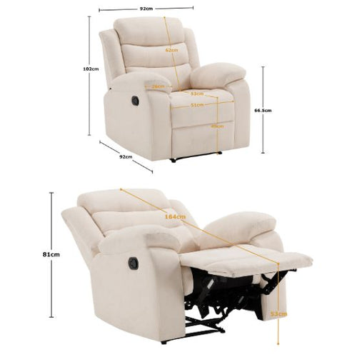 Boston Manual Latch Fabric Recliner Chair in Beige