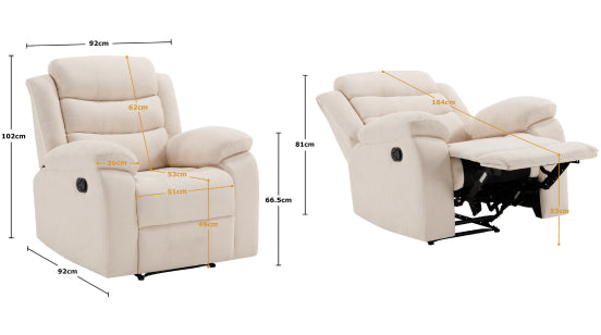 The Boston Recliner Chair has been upholstered in durable fabric to help your body stay at its optimum temperature throughout the year. So, you’ll be warm in the winter and cool in the summer. Soft foam padding, pillow back cushions and supportive padded armrests have been designed with your comfort in mind. With full chaise seating, you can unwind for hours.