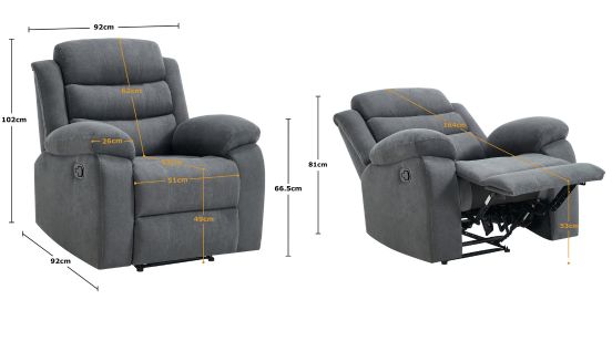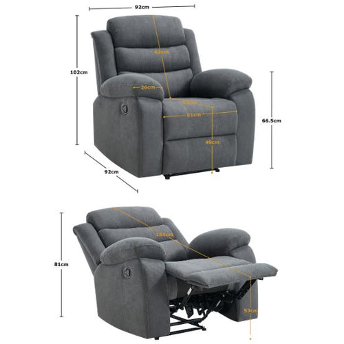 Boston Manual Latch Fabric Recliner Chair in Grey