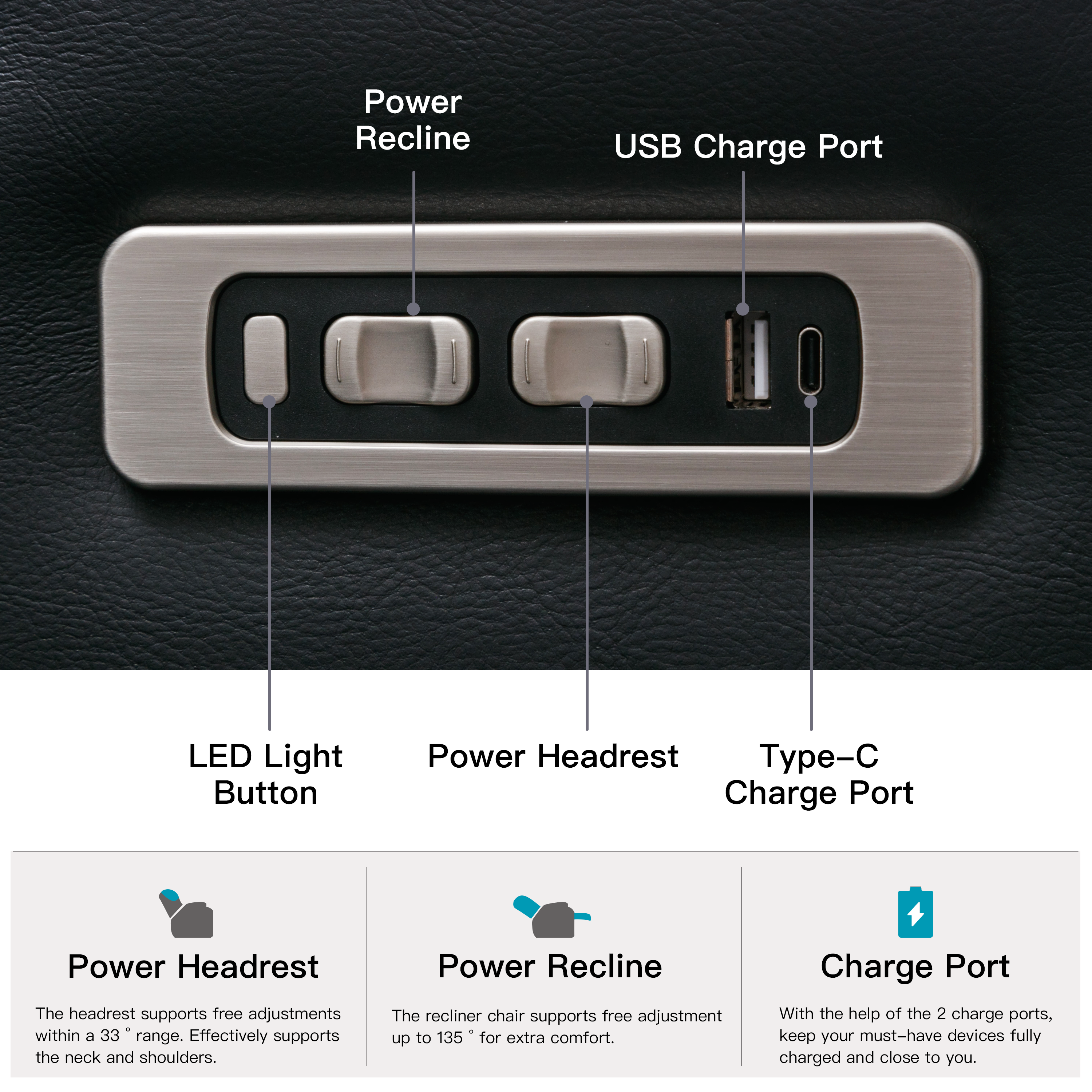 Recline with the touch of a button whilst also taking advantage of the padded powered headrest to give you that luxury cinema feel.
