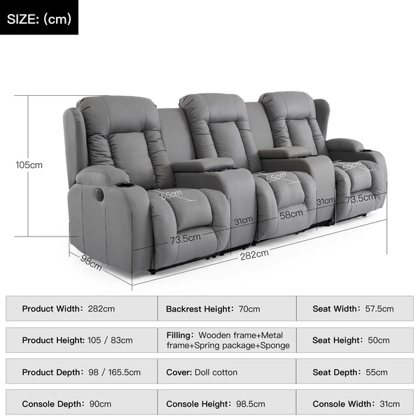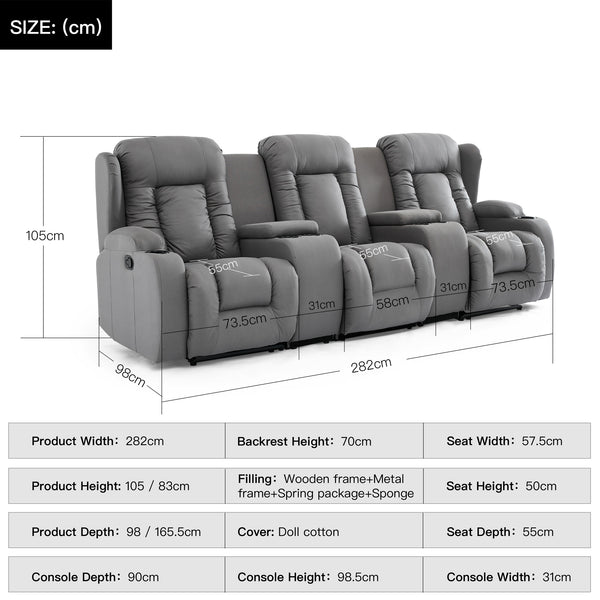 Caesar 3 seater recliner sofa with drinks console