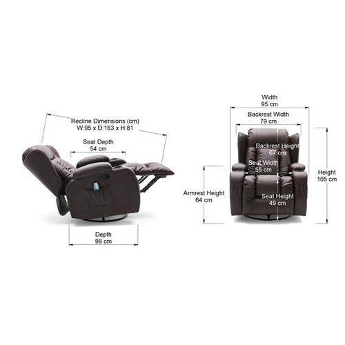 Relax and unwind in true comfort with the Caesar 10 Manual Recliner, made from stylish, super-soft bonded leather. Perfect for poor posture and stiff joints, soothe aching and tired limbs by gently pushing back to enjoy this reclining massage chair with heat. Part of our Premier Collection, the Caesar 10 boasts lumbar support, an 8-point vibrational massage, rocking and 360° swivel ability, enabling you to achieve unrestricted personal comfort. What's more, with handy drinks holders and side pockets for books, magazines, TV remotes and gaming controllers, everyone in the family will enjoy this highly versatile recliner. Whether you want to watch a movie, play a computer game or take a nap, the Caesar 10 has got it covered.