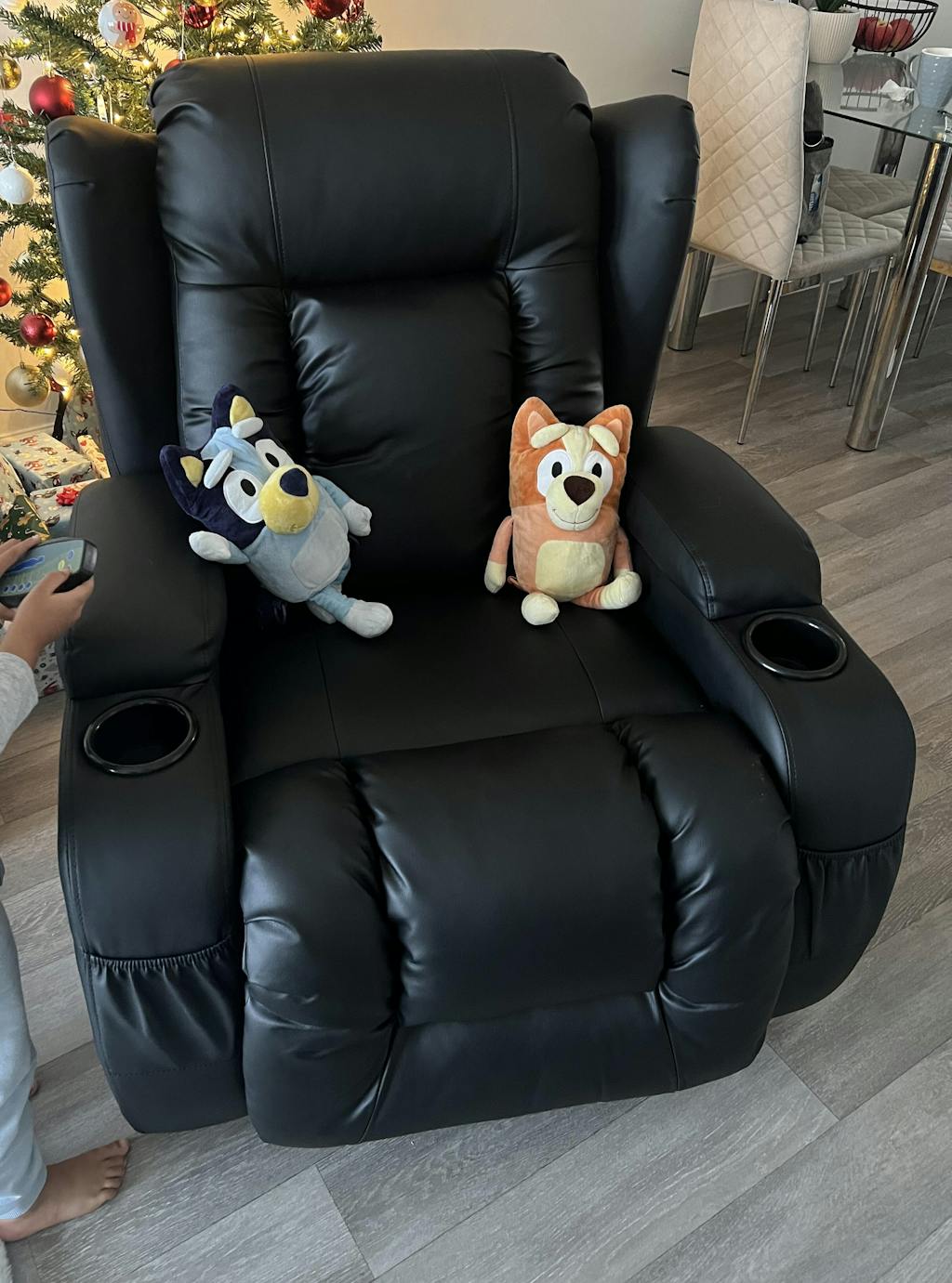 With the simple push of a button, you can indulge in a luxurious, soothing heat and massage. The Caesar Electric Recliner Chair offers comfort style and functionality. With soft padding and full lumbar support, this is the perfect cinema chair. The electric Caesar Recliner is upholstered in super-soft bonded leather and would suit most living areas and studies. Delight in an 8-point vibrational massage to soothe away stress and any aching muscles. Enjoy the gently warming, heated backrest on a cold winter's day. Simple to operate, relax and recline to watch your favourite film, sports game, or play a computer game. Keep your essentials close to hand with useful drinks holders and storage pockets (side and front).