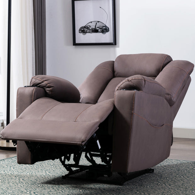 With the simple push of a button, you can indulge in a luxurious, soothing heat and massage. The Caesar Electric Recliner Chair offers comfort style and functionality. With soft padding and full lumbar support, this is the perfect cinema chair. The electric Caesar Recliner is upholstered in gorgeous Technology Fabric, a fabric with a leather like feel, and would suit most living areas and studies. Delight in an 8-point vibrational massage to soothe away stress and any aching muscles. Enjoy the gently warming, heated backrest on a cold winter's day. Simple to operate, relax and recline to watch your favourite film or sports game from the comfort of this chair. Keep your essentials close to hand with useful drinks holders and storage pockets (side and front).