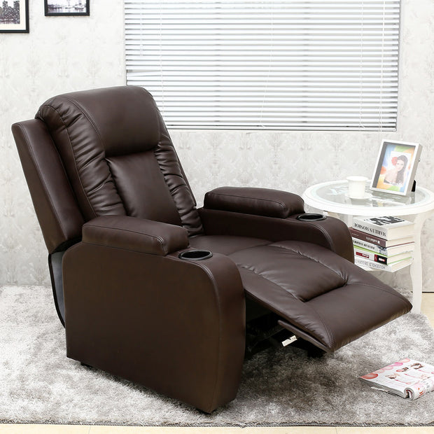 With the simple push of a button, you can indulge in a luxurious, soothing heat and massage. The Caesar Electric Recliner Chair offers comfort style and functionality. With soft padding and full lumbar support, this is the perfect cinema chair. The electric Caesar Recliner is upholstered in super-soft bonded leather and would suit most living areas and studies. Delight in an 8-point vibrational massage to soothe away stress and any aching muscles. Enjoy the gently warming, heated backrest on a cold winter's day. Simple to operate, relax and recline to watch your favourite film, sports game, or play a computer game. Keep your essentials close to hand with useful drinks holders and storage pockets (side and front).