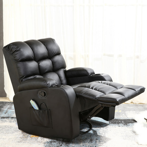Relax and unwind in true comfort with the Caesar 10 Manual Recliner, made from stylish, super-soft bonded leather. Perfect for poor posture and stiff joints, soothe aching and tired limbs by gently pushing back to enjoy this reclining massage chair with heat. Part of our Premier Collection, the Caesar 10 boasts lumbar support, an 8-point vibrational massage, rocking and 360° swivel ability, enabling you to achieve unrestricted personal comfort. What's more, with handy drinks holders and side pockets for books, magazines, TV remotes and gaming controllers, everyone in the family will enjoy this highly versatile recliner. Whether you want to watch a movie, play a computer game or take a nap, the Caesar 10 has got it covered.