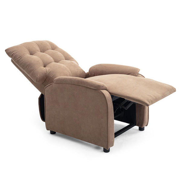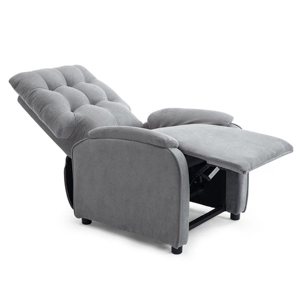 The Charlbury Pushback Recliner is a compact, comfy chair with a stylish modern design. Ideal for smaller rooms, this chair will recline to an almost sleeping position. Covered with a soft neutral fabric and featuring a tufted back cushion, this contemporary armchair will offset virtually any style of room décor. Use your legs to push the chair back and recline, and then kick back when you want to sit back up again. Due to its smart design and neutral colour options, this riser recliner chair will blend in beautifully with a range of décor schemes.
