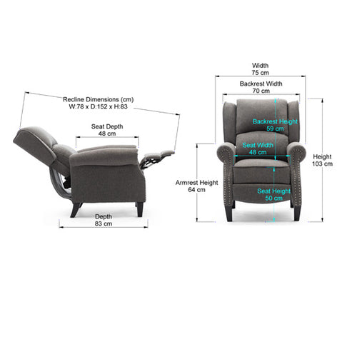 Charlotte Fabric Push Back Recliner Chair in Grey