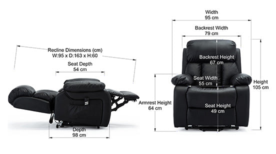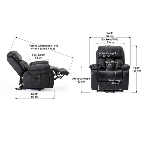 Chester Dual Motor Leather Rise Recliner Chair with Massage and Heat in Black