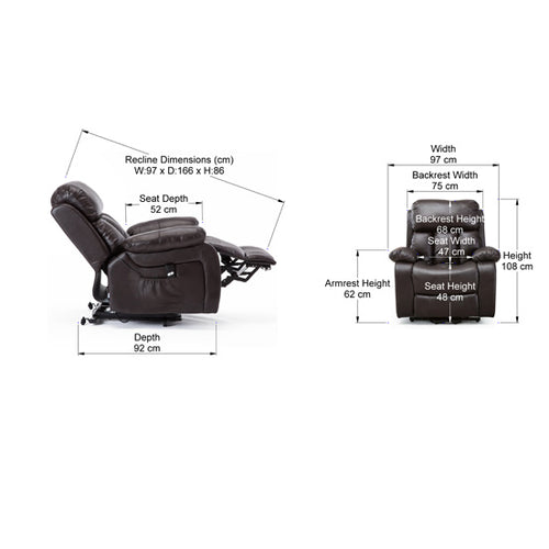 Chester Dual Motor Leather Rise Recliner Chair with Massage and Heat in Brown