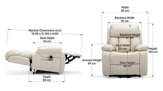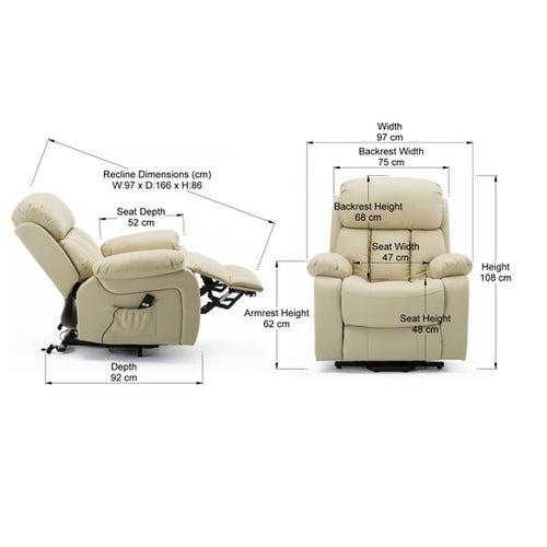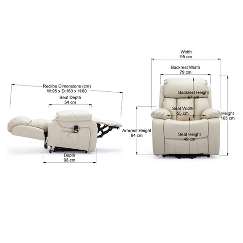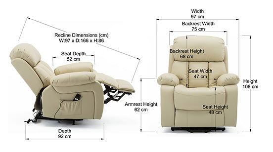 Chester Dual Motor Leather Rise Recliner Chair with Massage and Heat in Cream