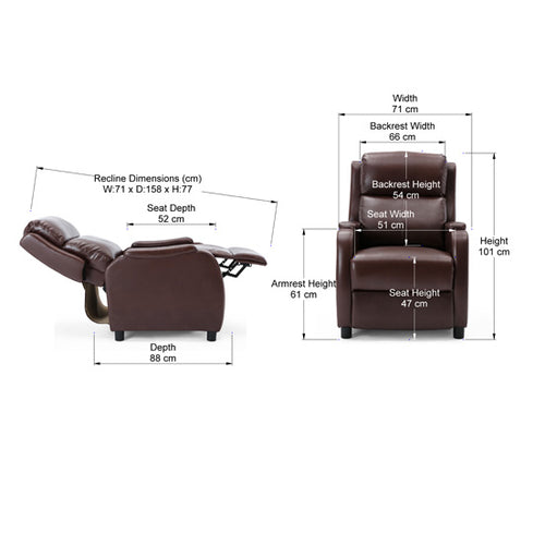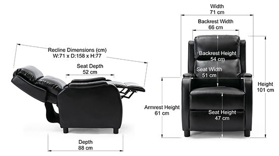 This Churwell Push back Recliner will look equally stunning in your home study as it will in your living room. What’s more its compact size means it won’t take up too much space in even the tiniest of rooms. The Churwell’s curved armrests and sleek design make it a true stylish addition to your home, and with an envious price point – all your friends will be asking where it’s from. Available in black, grey and brown, the bonded leather upholstery makes it super easy to clean and maintain.