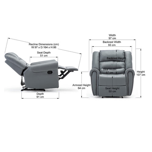 Denver Leather Manual Recliner Chair in Grey
