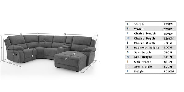 In addition to a chaise longue section, this sofa also has a built-in latch recliner on the other side, giving you around 150 degrees of recline.Our Bestsellers