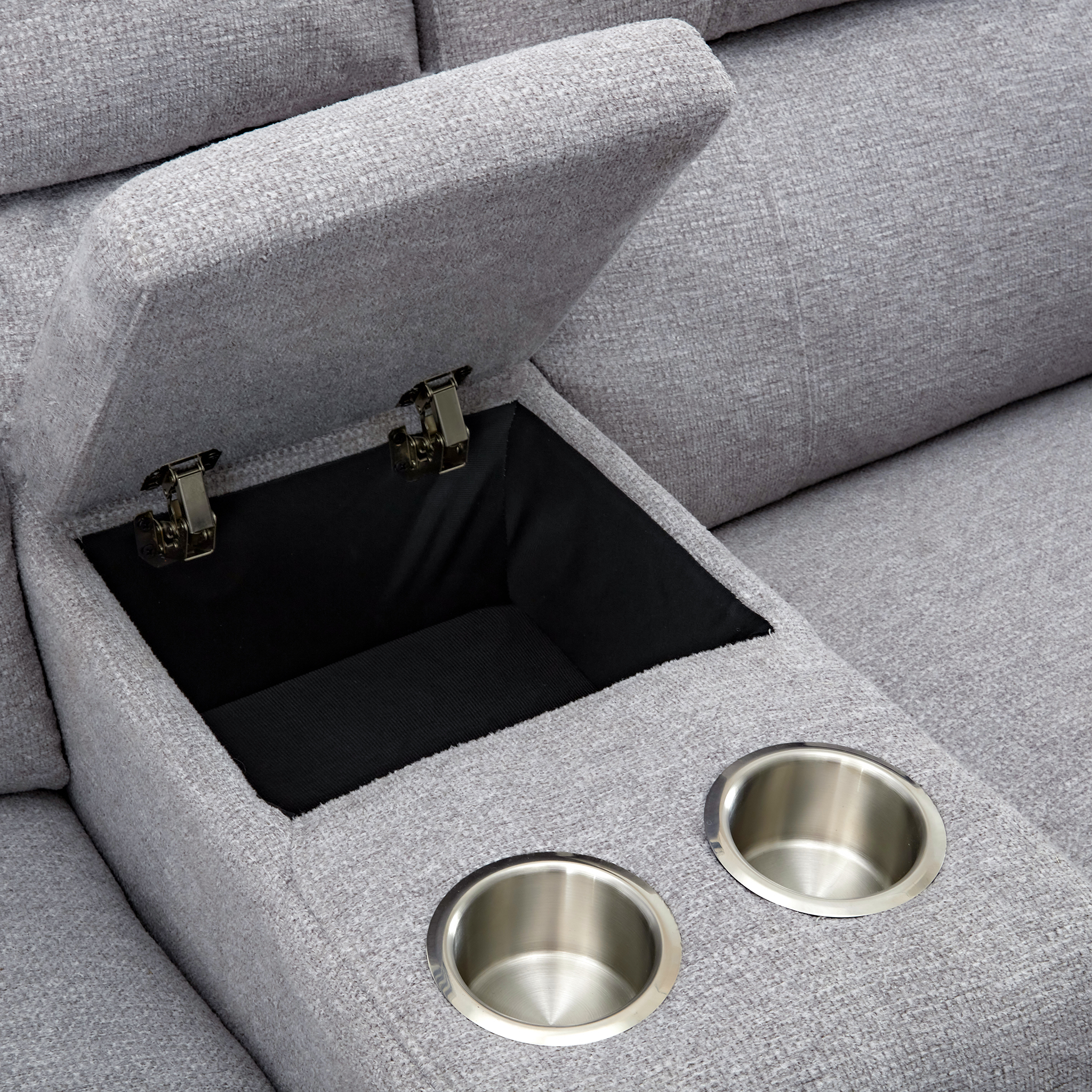 Another great addition is the drinks console next to the chaise seating. With built-in storage and 2 cupholders, it makes movie night even better.