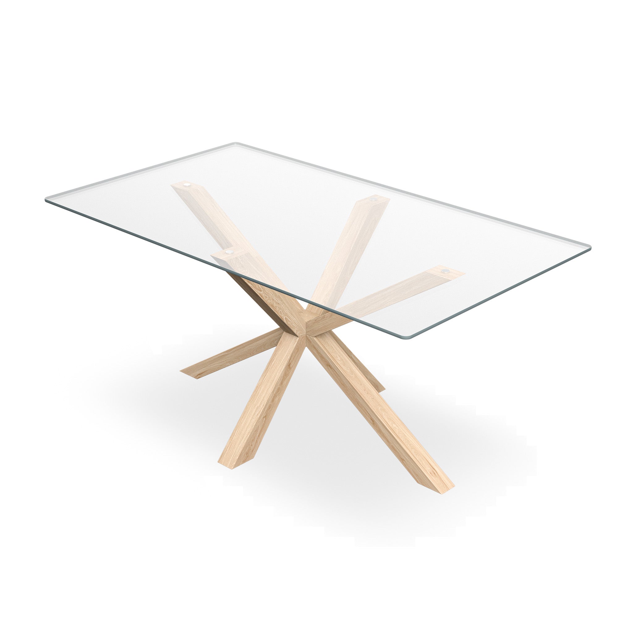 Etta glass dining table and chairs - glass top w solid oak legs + maya boucle dining chair set of 4/6