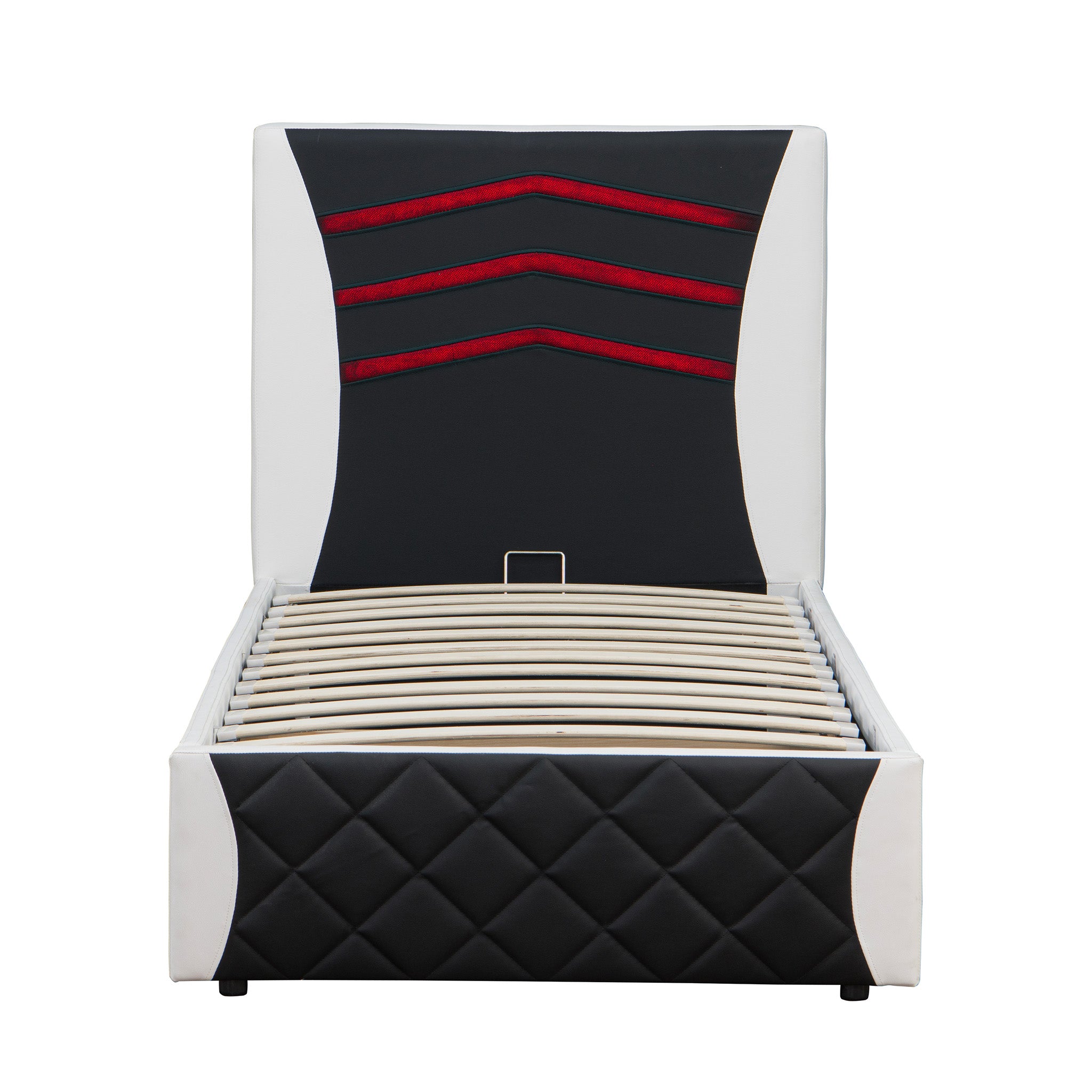Galaxy black and white faux leather led headboard ottoman bed frame