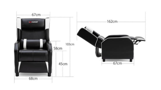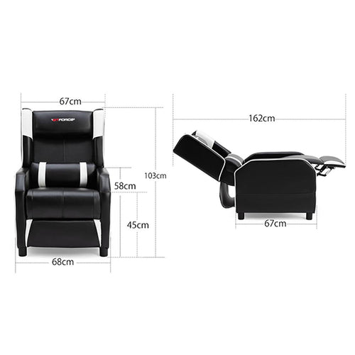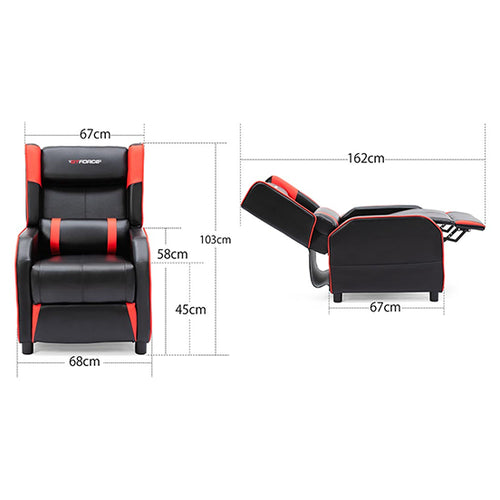 The GTFORCE Ranger X Push Back Gaming Recliner is the ultimate hybrid armchair. Experience the thrill of the game and then kick back in style with wide winged support. The high-density foam padding provides deep cushioning for supreme comfort, along with removable neck and back pillows. Covered in a highly durable, faux leather cover, this gaming recliner has dynamic accents on the winged support, back pillow, base, and along its edge from top to toe. Store gaming controllers and smart devices in the handy side pockets. Push back with your legs to recline and use your body force to sit back up – it’s easy peasy.