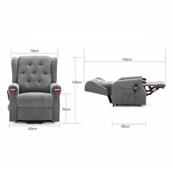 The Harrogate Rise Recliner is a super-stylish addition to your home with its classic buttoned back cushion and textured fabric covering. The dual-motor mechanism is unique as it allows you to move the backrest and footrest while reclining independently. One simple press of a button will lift the chair upwards, allowing you to rise to a full standing position while returning to a seated position is just as easy. This chair is ideal for anyone with mobility issues which needs special assistance to stand up. Available in both grey and brown, these neutral tones will nicely blend into any room.