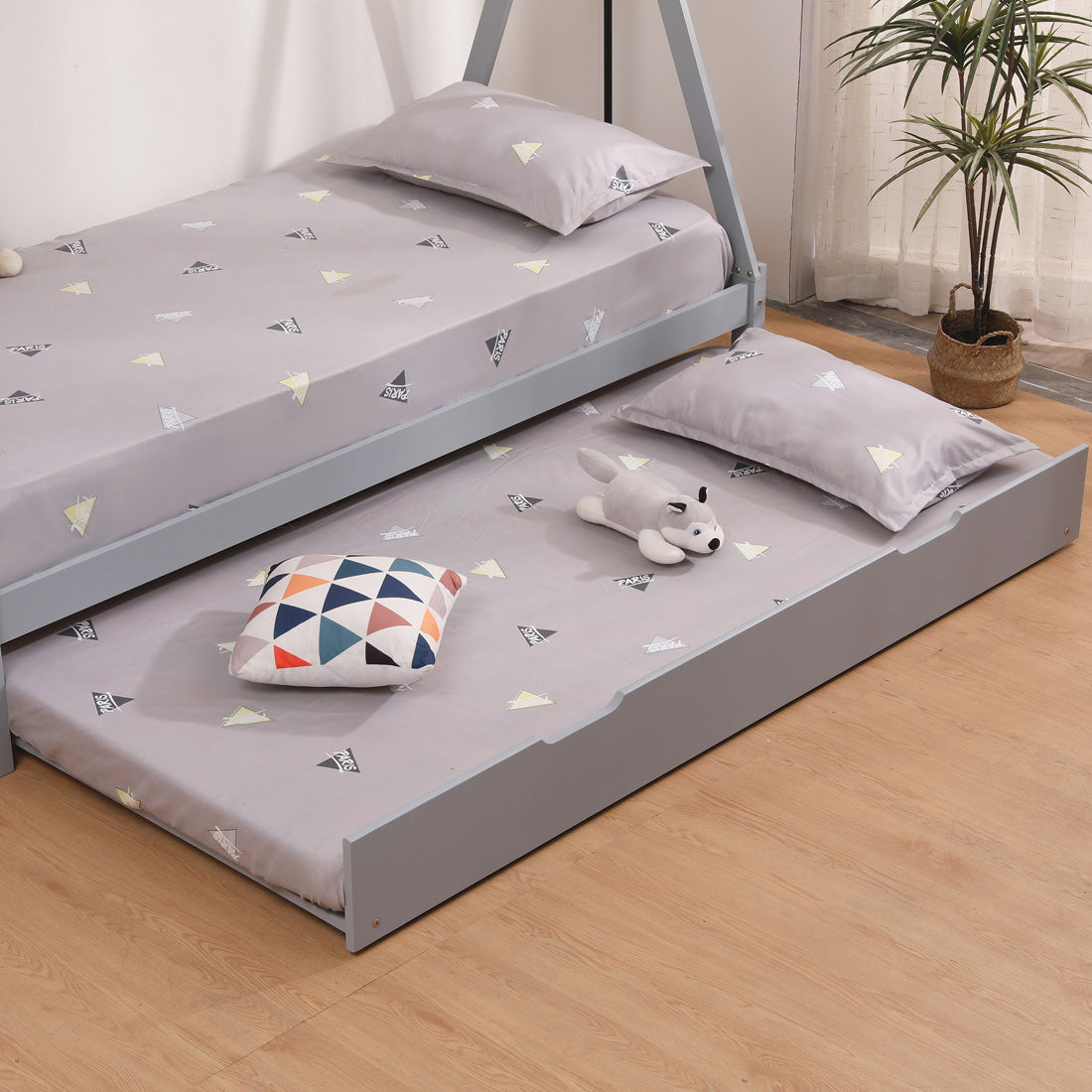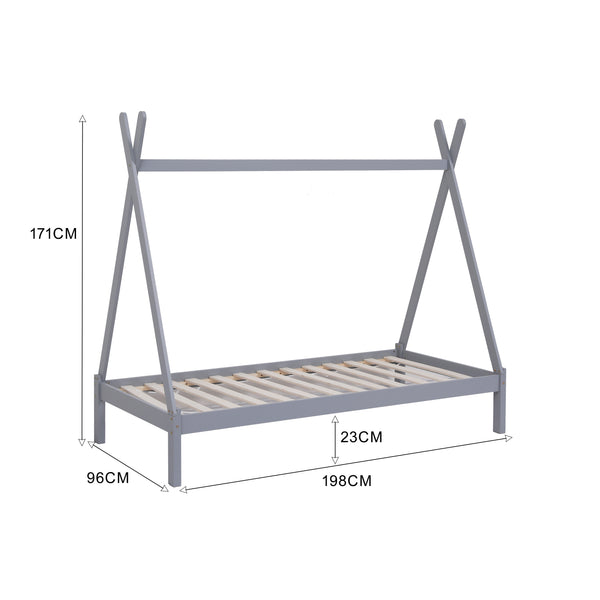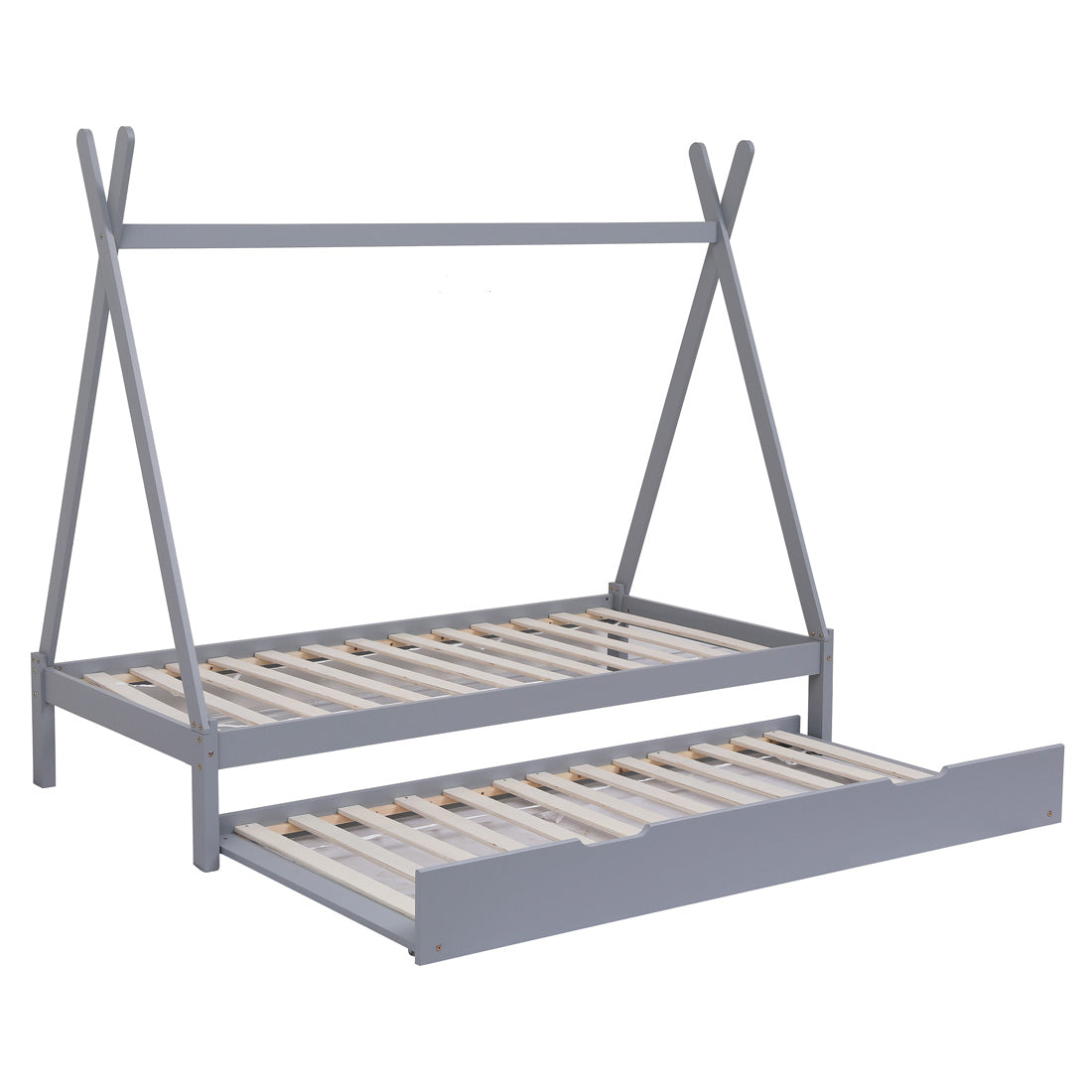 Harry Kids Wooden Teepee Tent Single Bed Frame with Guest Trundle in Grey