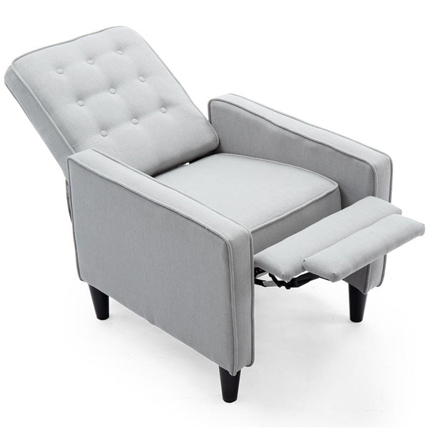 Why pick only style or comfort, when you can have both? Our super chic Kenton Push Back Recliner Armchair is the complete package. With its discreet push-and-glide reclining function, perfect for more compact rooms. Sit down, push back, and when you are ready, gently push back and the chair will glide back into an upright position. Not only will your body be fully supported, but the linen fabric will ensure your body stays at the optimum temperature. It won’t feel too hot in the summer or too cold in the winter. Available in three gorgeous trendy shades, this chair will bring any room to life.