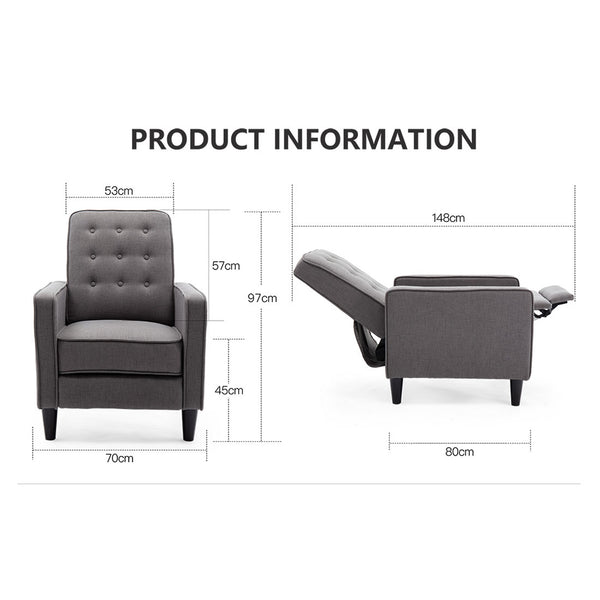 Kenton Linen Pushback Recliner Armchair in Charcoal
