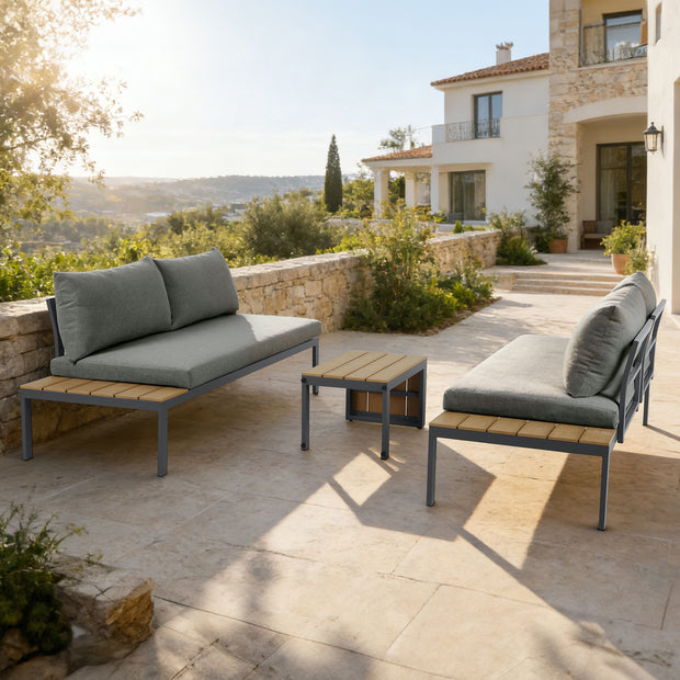 Sit back and embrace the summer in the gorgeous Lagos Garden Sofa Set. This stunning outdoor furniture set comes with a glass table accompanied by a 2-Seater sofa and two single seater chairs.