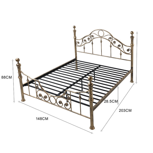 Letchworth Vintage Victorian Style Antique Brass Metal Bed Frame - Small Double