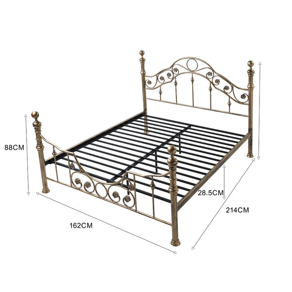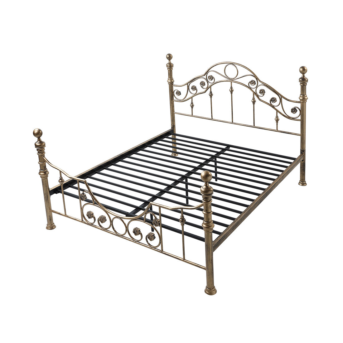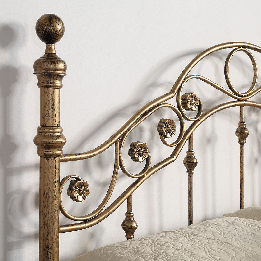 With its Hand-brushed Antique metal frame and flower detailing, the Letchworth has a distressed yet classy finish. With its vintage appeal, this metal bed frame will add a sophisticated air to any bedroom. The sturdy metal slatted base offers support for your mattress and superb sleeping comfort. This bed frame has storage space underneath.