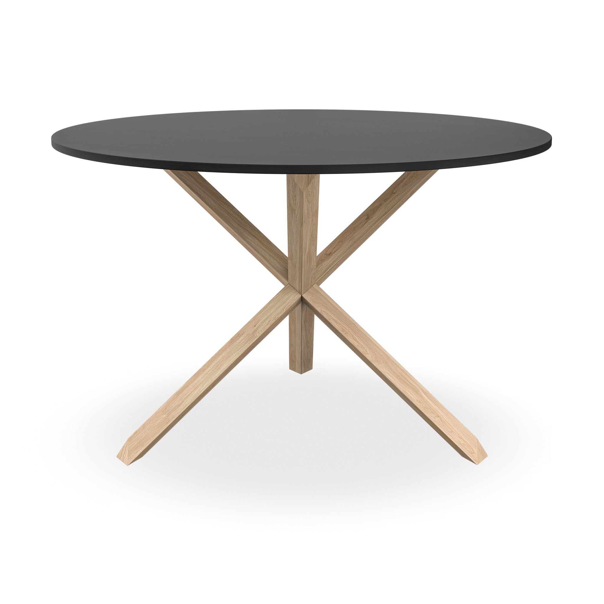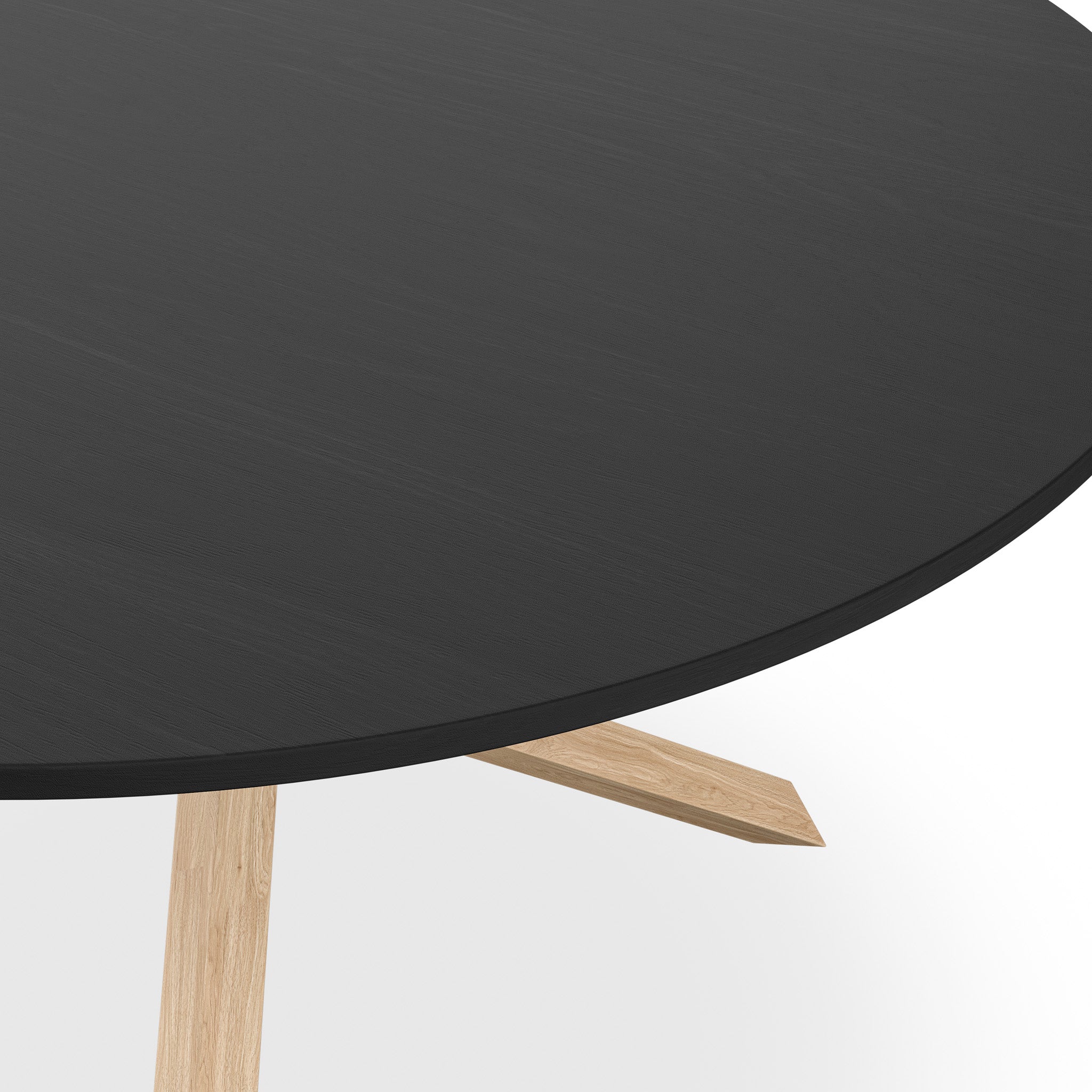 Malvern Round Black Dining Table w Oak Legs & 4 Ivory White Maya Boucle Chairs