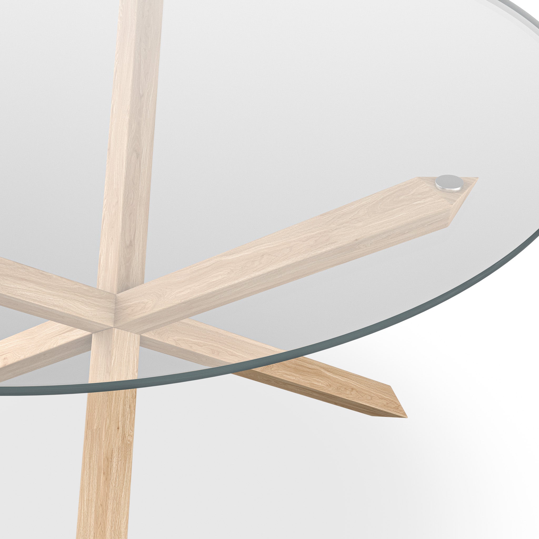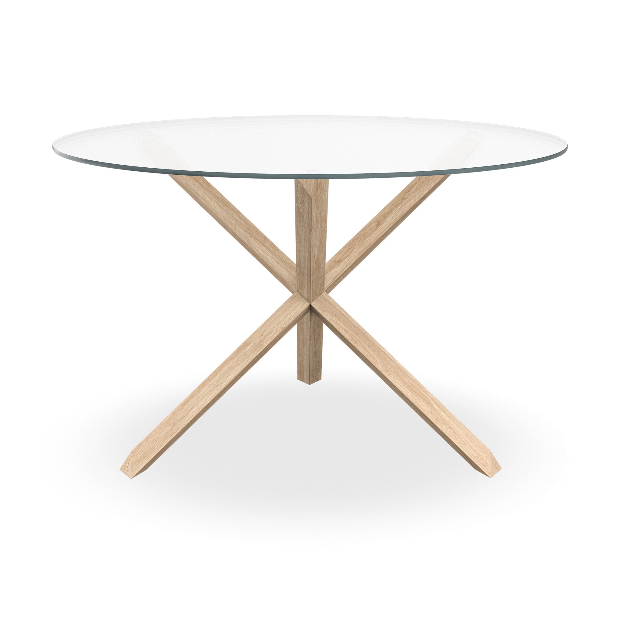 Malvern round dining table and chairs - clear glass table top w solid oak legs + anika dining chair set of 4