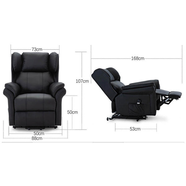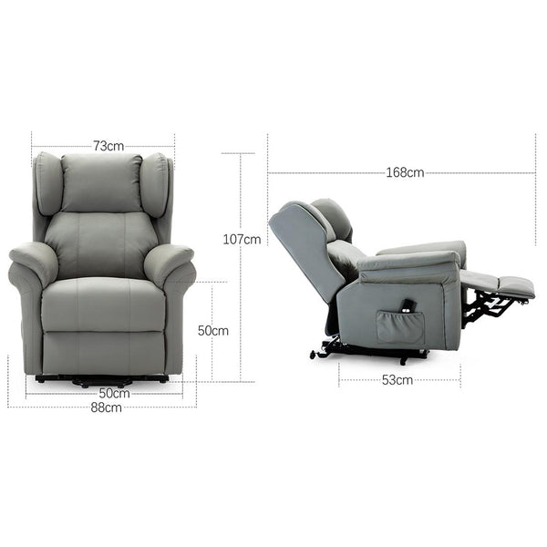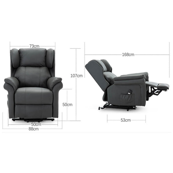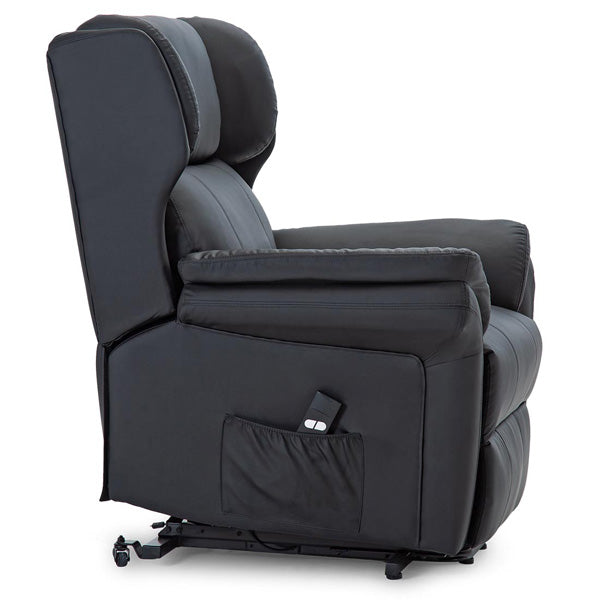 The classic Oakford Electric Rise Recliner will make a stylish addition to any home. Covered in smooth, easy to clean bonded leather, this popular electric recliner is simple to use and comes with a controller on the side. Designed for comfort, it also offers excellent lumbar support due to its padded armrest and also supports the neck for those all-important naps with its winged backrest. The recline function makes this chair ideal for anyone who likes a quick snooze in their chair, while the rise mechanism makes it perfect for anyone who requires assistance with coming to a standing position. You can do all of this with a simple push of a button.