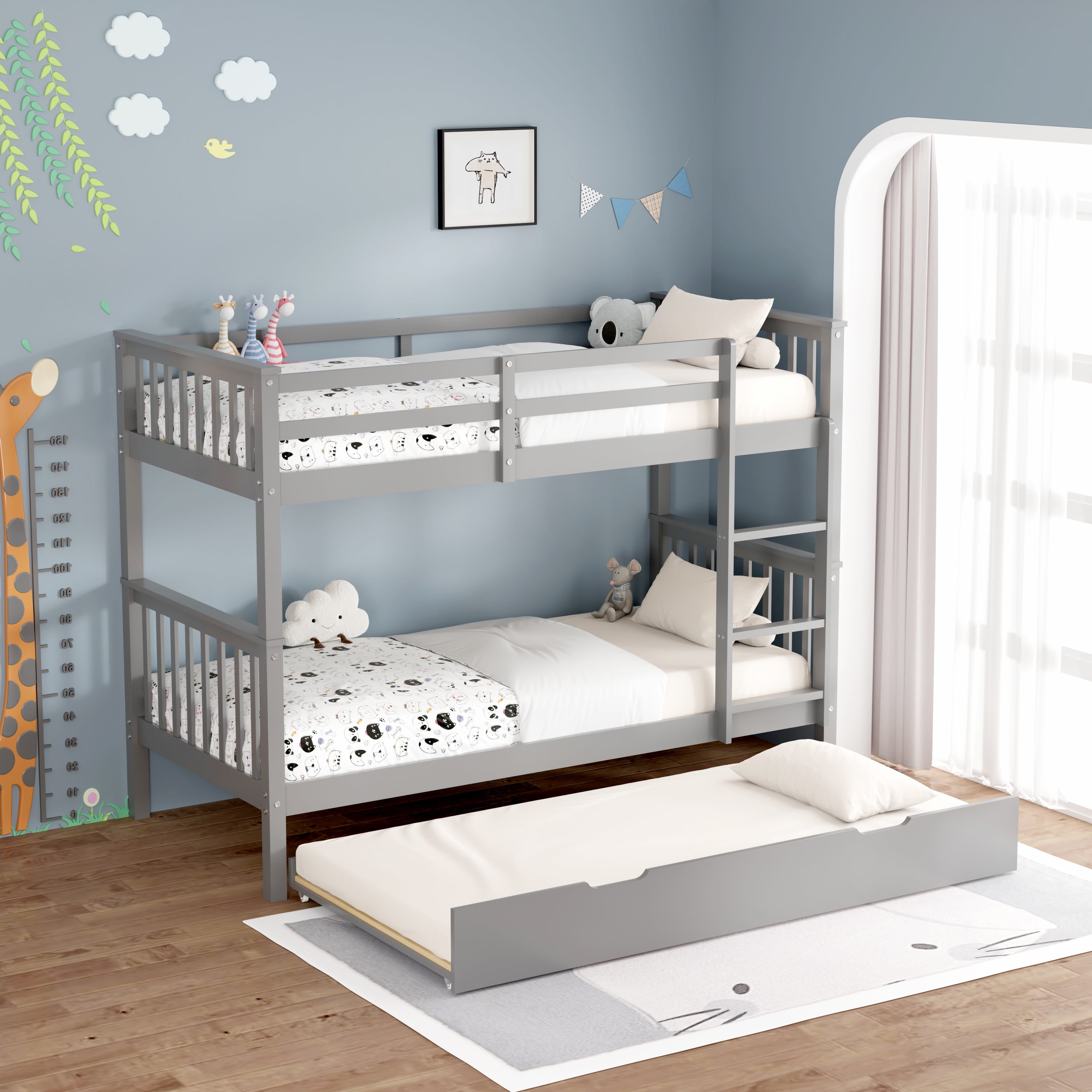 Ideal for smaller spaces, this single size bunk bed maximizes room functionality. The stacked design optimizes floor space, providing a cosy sleeping solution without sacrificing style. Supplied with a pull-out guest trundle bed turning this double bunk bed into a triple sleeper! A great space-efficient sleeping arrangement for siblings or guests.