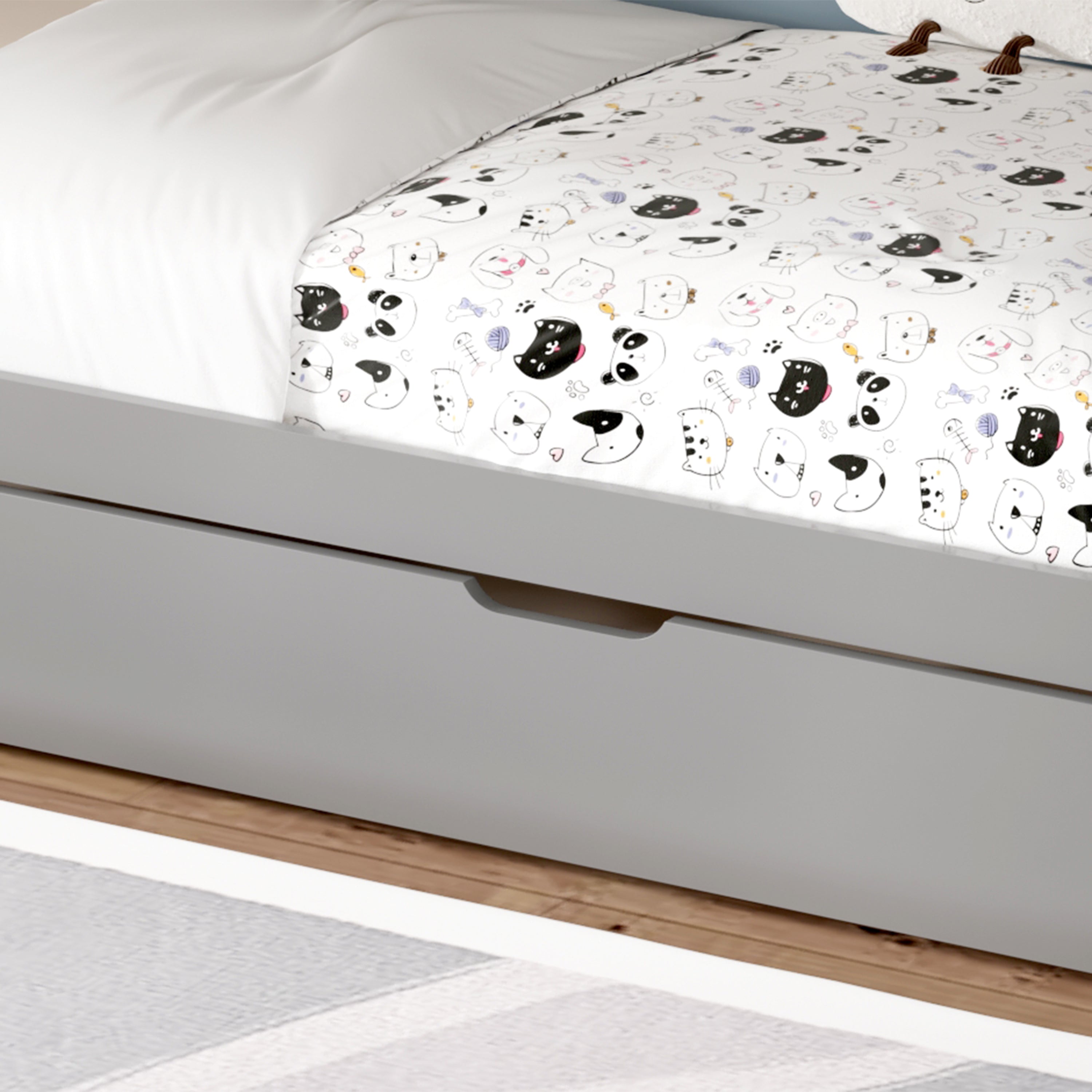 Introducing the Oliver Wooden Single Bunk Bed with Guest Trundle Bed from our SlumberWorx collection. A charming and practical solution for your child's bedroom. Crafted with safety and style in mind, this sturdy bunk bed features a timeless white finish that effortlessly complements any decor. The solid wood construction ensures durability, providing a secure and stable sleeping space for your little ones. The cleverly designed single bunk configuration maximizes floor space, making it ideal for smaller rooms. The integrated ladder and guardrails enhance safety, while the slatted bed base promotes airflow for a comfortable night's sleep. Elevate your child's room with this versatile and elegant bunk bed. Complete with a Guest Trundle which turns this bunk bed from a 2 sleeper to a 3 sleeper! Available in White and Grey.