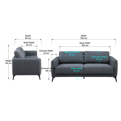 Transform your living space with the Oslo 3-Seater Sofa. Whether you're looking to make a statement in a small apartment or furnish a spacious living room, the Oslo offers the perfect solution. Crafted with high-quality fabric, this Sofa is not only visually appealing but also durable and comfortable. The soft texture invites you to relax and unwind. Its well-cushioned seats and supportive backrests ensure you and your guests can lounge in style. Adding a touch of industrial chic, the sturdy metal legs provide excellent support and stability.