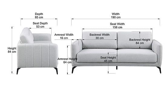 Available in 3 colours, Dark Grey, Light Grey and Beige as either a 2-Seater or 3-Seater.