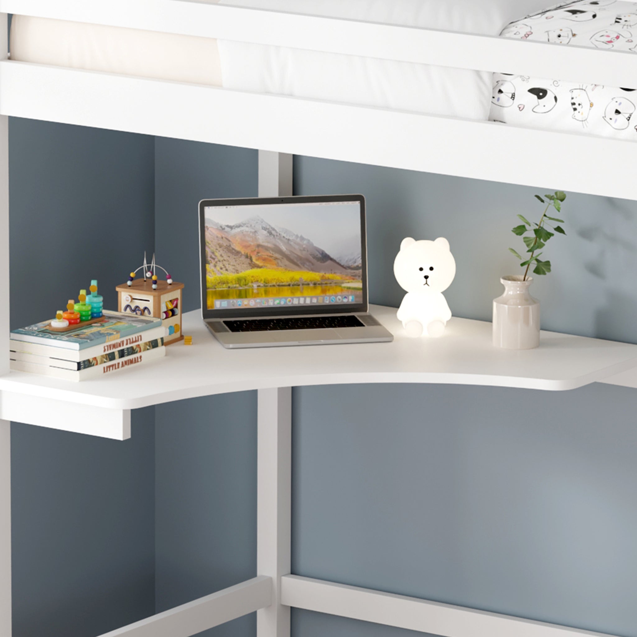 The Poppy White Wooden High Sleeper Bunk Bed with Desk is designed to combine style, functionality, and durability, making it an ideal choice for your child's bedroom.