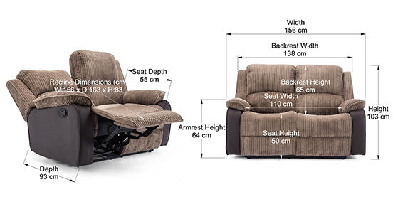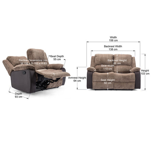 Postana Manual 2 Seater Recliner Sofa in Brown Jumbo Cord