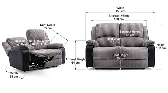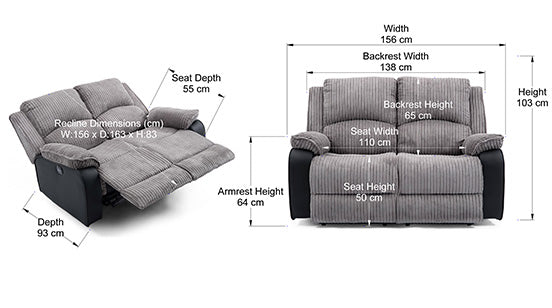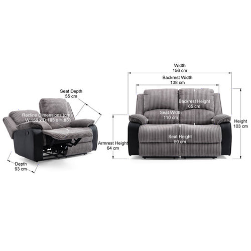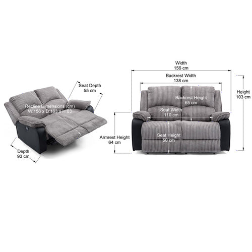 Keston 2 Seater Jumbo Cord Recliner Sofa Grey+Cord / Manual