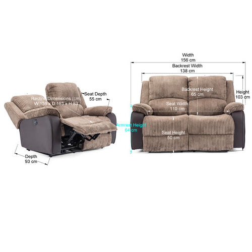 Postana Electric 2 Seater Recliner Sofa in Brown Jumbo Cord