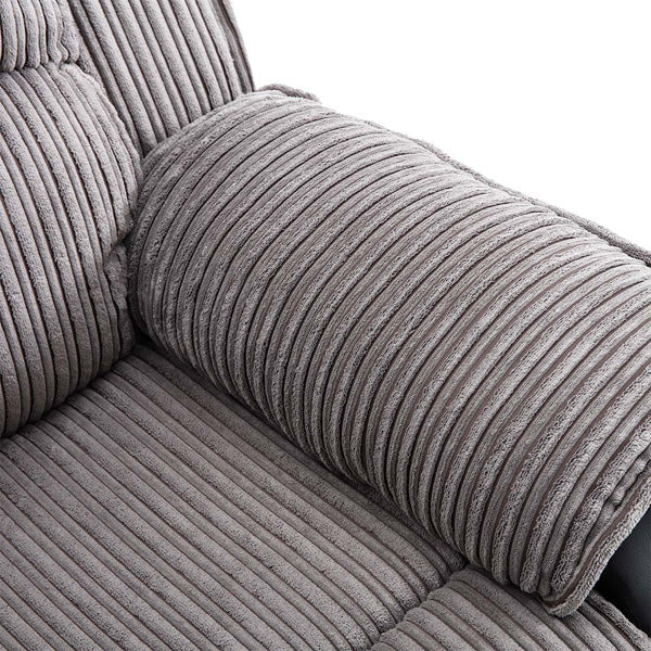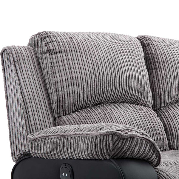 The super-smart Postana Electric Sofa is the ultimate addition for any living space when you have sheer comfort and ease in mind. Part of our Premier sofa collection, this stylish sofa is upholstered in super-soft jumbo cord with faux leather sides and is controlled by buttons on the side. This easy-to-use sofa has individual reclining seats, allowing you to put your feet up and lie back for a relaxing snooze. With its luxurious soft cover and wide padded armrests, this sofa offers extra support for the ultimate relaxation. Available in brown or grey – 3 or 2-seater sofas can be purchased individually.