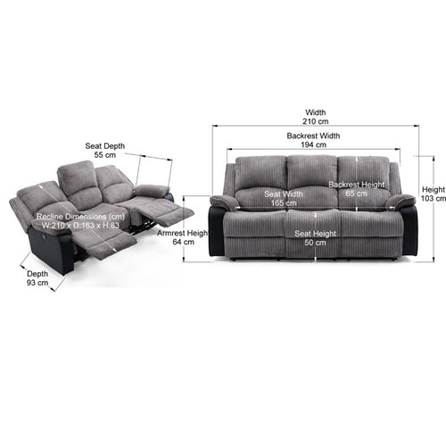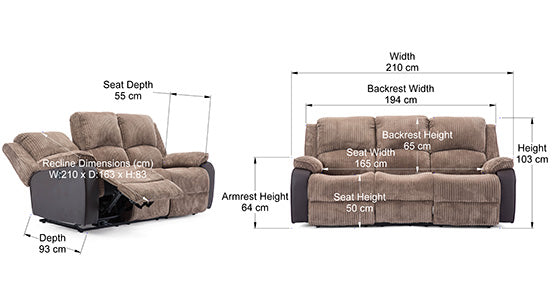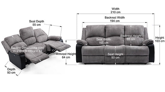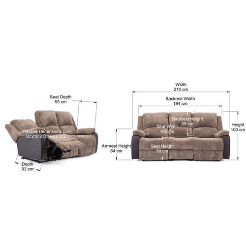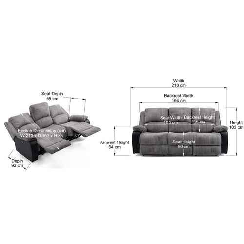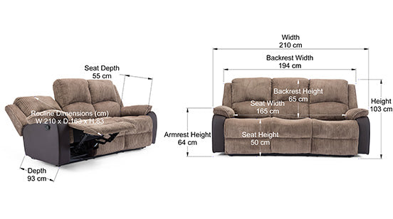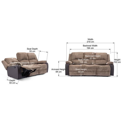 The smart Postana sofa has been designed with comfort in mind. Part of our premier sofa collection, this stylish sofa is upholstered in super-soft jumbo cord with faux leather sides. The seats can be individually reclined using a manual latch mechanism on the side. Whether you want to relax and watch a film or have an afternoon snooze, this sofa will allow you to put your feet up and relax in comfort. Due to its softcover, this sofa has a soft, luxurious feel and offers extra support for superior relaxation.